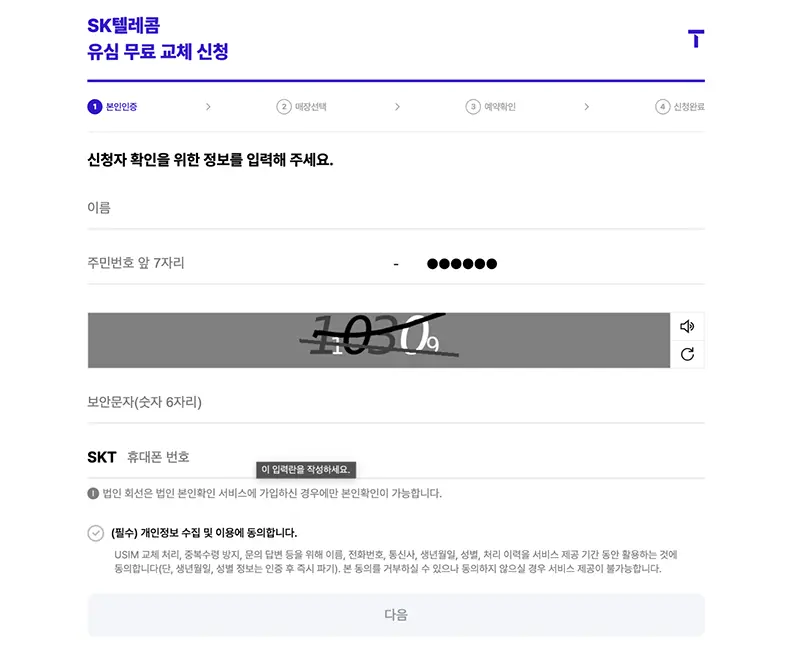 SK텔레콤 유심 무료 교체 예약 신청하기